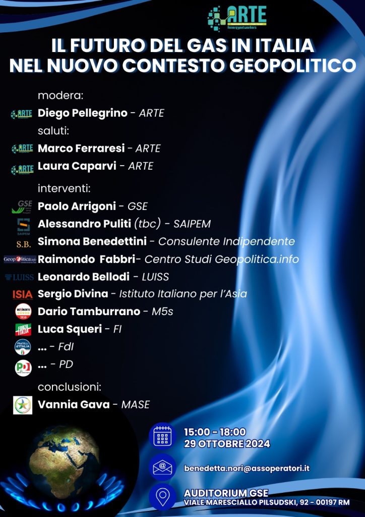 Arte – Convegno “Il Futuro del Gas in Italia nel nuovo Contesto Geopolitico” – Roma 29.10.2024 Ultimi aggiornamenti